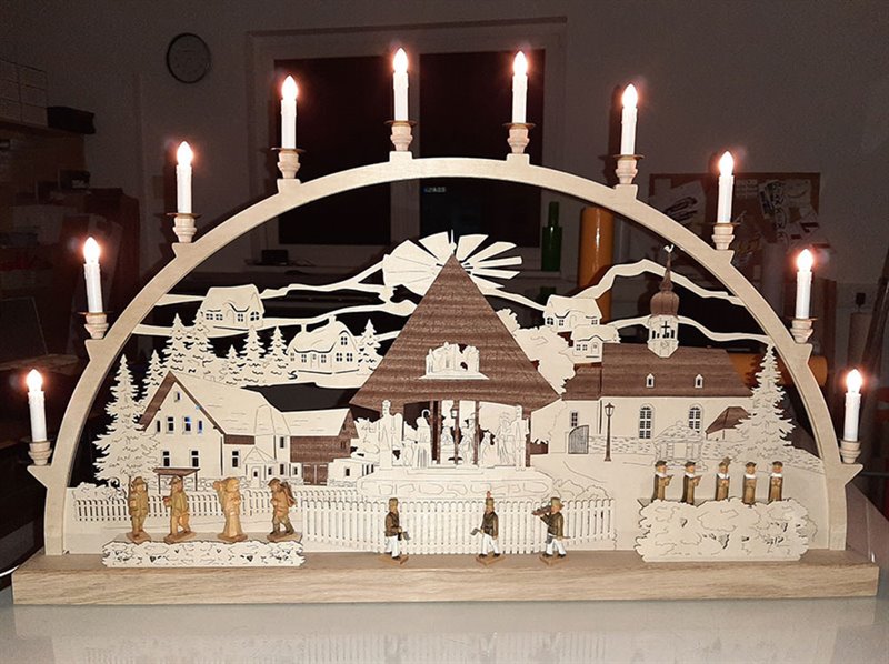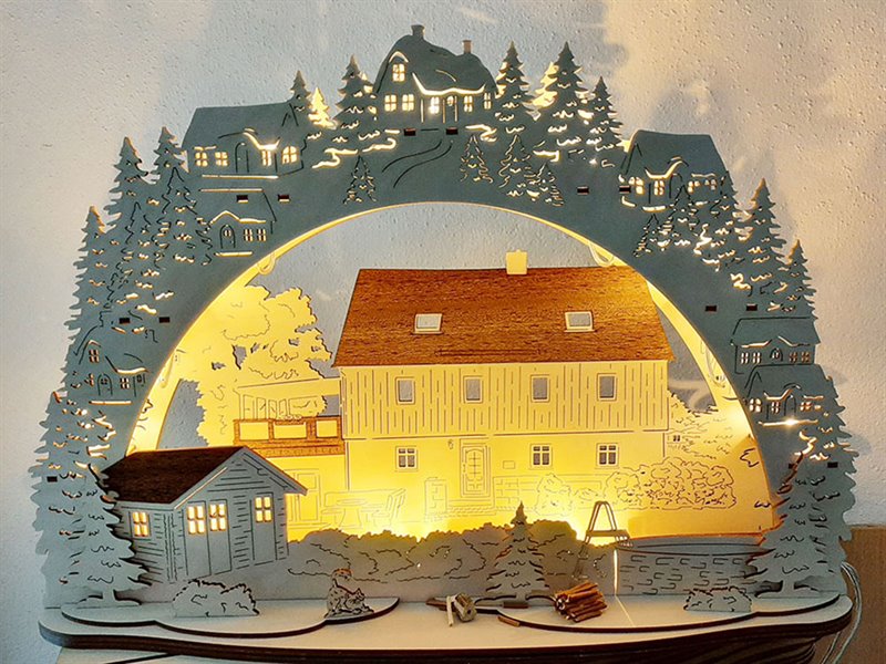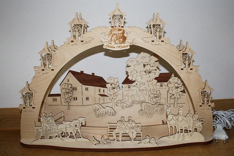 Wir entwickeln individuelle Holzkunstprodukte nach Ihren Vorstellungen. Ob Sie als Privatperson anfragen oder als Unternehmer - wir realisieren Ihre Vorstellungen. Angefangen von traditionellem Baumschmuck wie z.B. Holzanhänger sowie Schwibbögen und Teelichthalter bis hin zu dekorativen Leuchten oder speziellen Holzbildern, welche elektrisch beleuchtet sind.