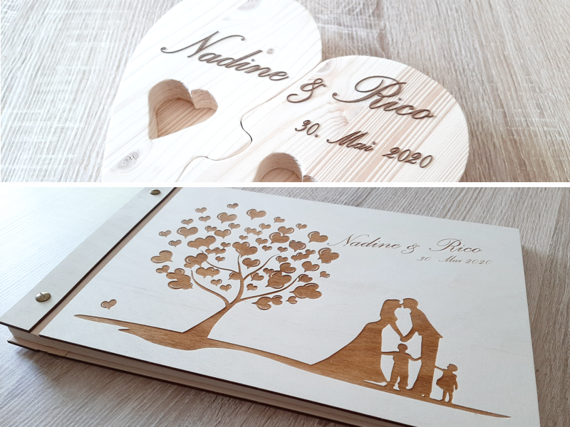 Verschiedene Naturmaterialien wie z.B. Furniere oder Bast werden kombiniert, auch Stein und Schiefer können graviert werden bzw. zum Einsatz kommen. Unsere Kunstwerke werden mit viel Liebe zum Detail sowie Begeisterung für einzigartige individuelle Motive geschaffen.